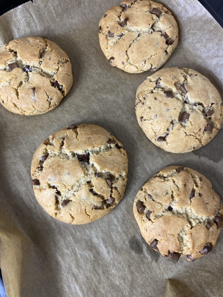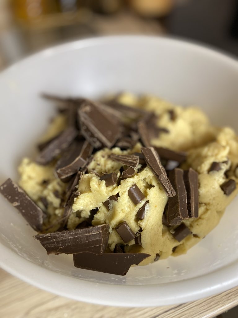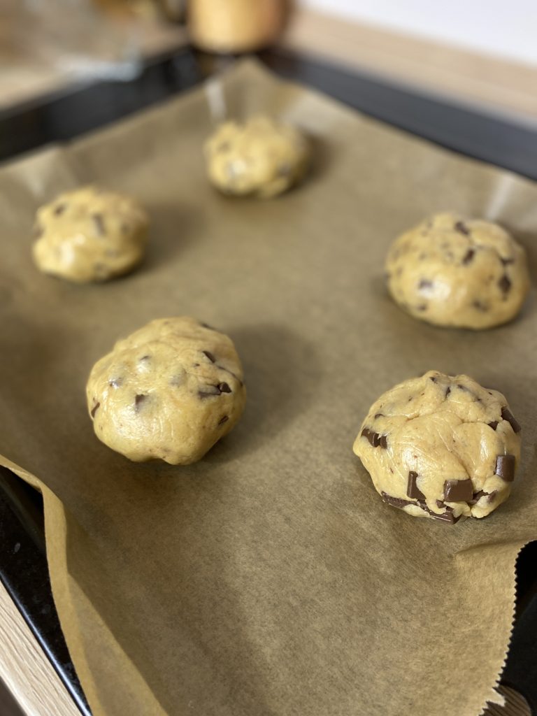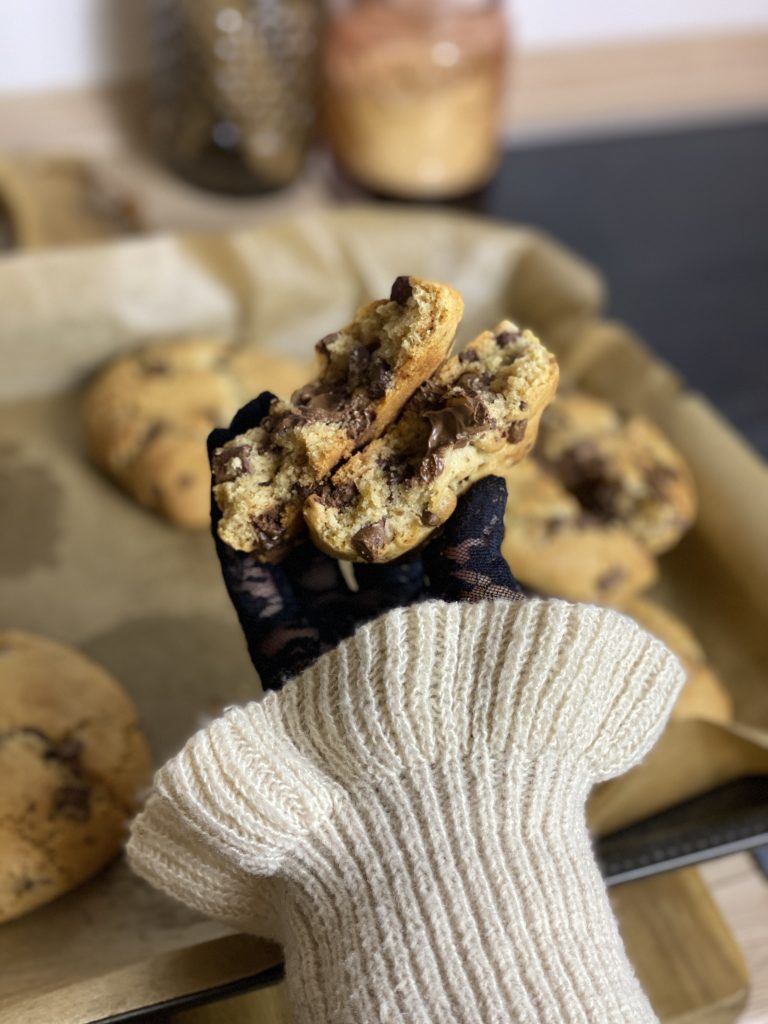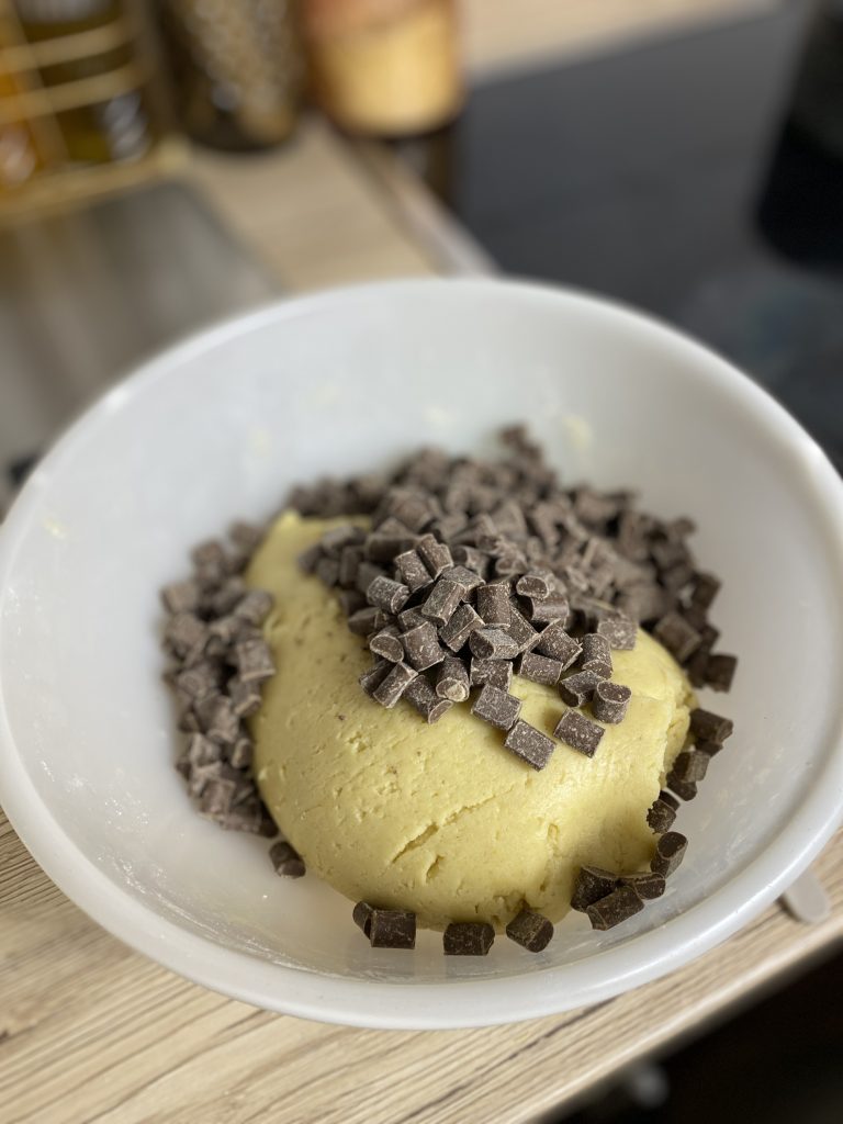 I used chocolate chunks instead of chips (because honestly: the more chocolate, the better đ) and I even hid a piece of baking chocolate inside each cookie.