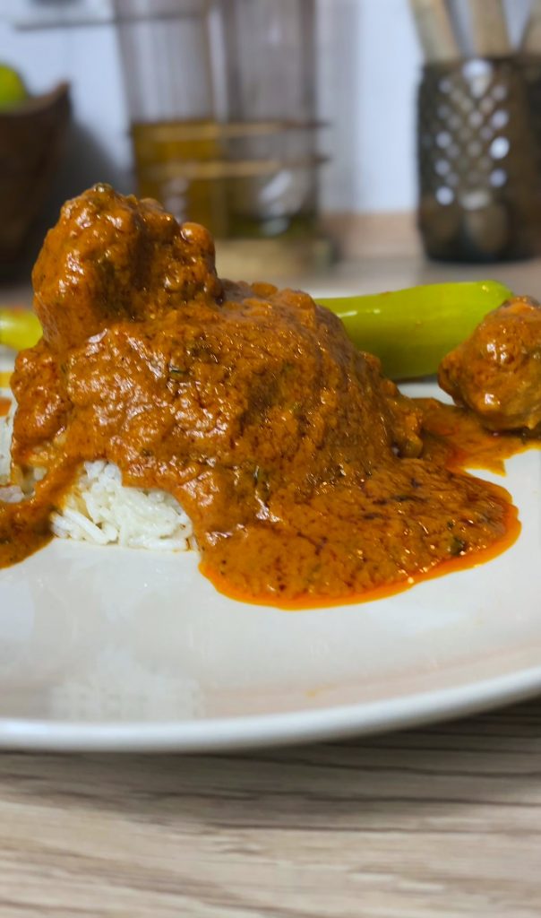 This dish is perfect for peanut lovers. The sauce is creamy, rich and full of flavor with warm spices, peanut butter and a touch of coconut milk.